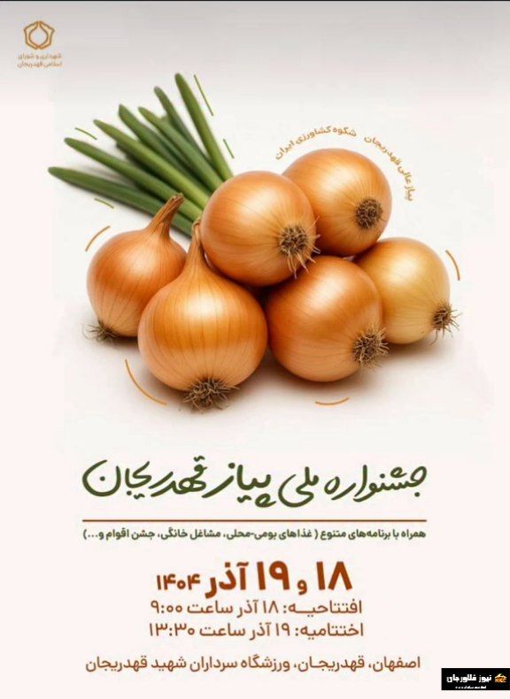به گزارش نیوز فلاورجان  نخستین جشنواره ملی پیاز و پیازکاران قهدریجان محلی برای نمایش ظرفیت‌های تولید ملی بود طی روزهای۱۸ و ۱۹ اذز ماه  به همت شهرداری قهدریجان در ورزشگاه سرداران شهید شهر قهدریجان  برگزار شد.
